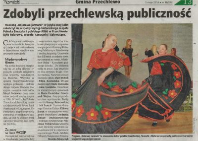 Polska premiera widowiska Kolorowy Jarmark odbyła się 1.05.2016r. Tuż po niej zagraliśmy w naszym kraju jeszcze kilka kolejnych koncertów. Program został przygotowany przez zespoły: Alibii (Polska) oraz Poleska Zorachka (Białoruś). Jest on wystawiany w językach: polskim, rosyjskim, niemieckim i angielskim. Oto komentarze medialne po pierwszych koncertach w Polsce.